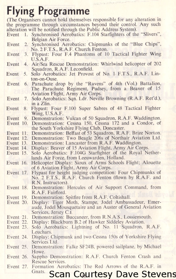 Unfortunately there is no mention at all of the team in the Flying Programme ( Many thanks to Dave Stevens for the scan ).