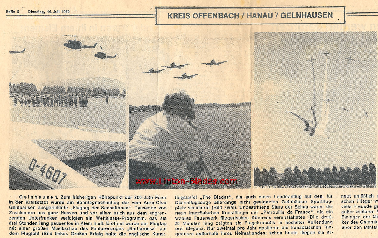 It says about the Blades .. "The Blades had a huge success with, amongst other things, their simulated landing on the Gelnhausen Sport airfield, which is not built for jet traffic"