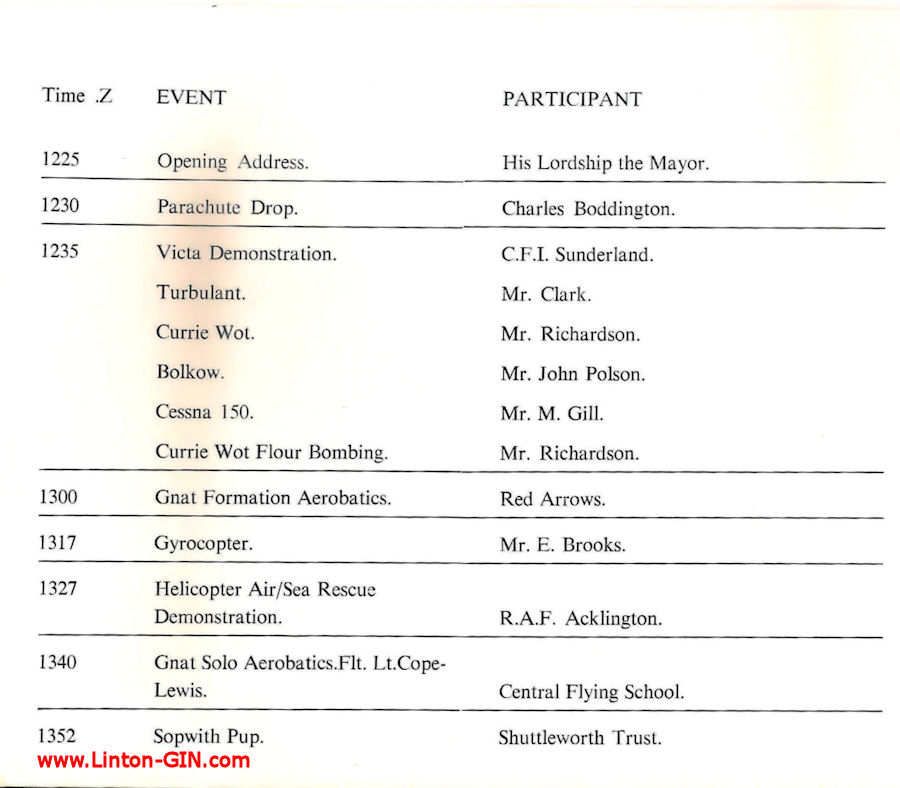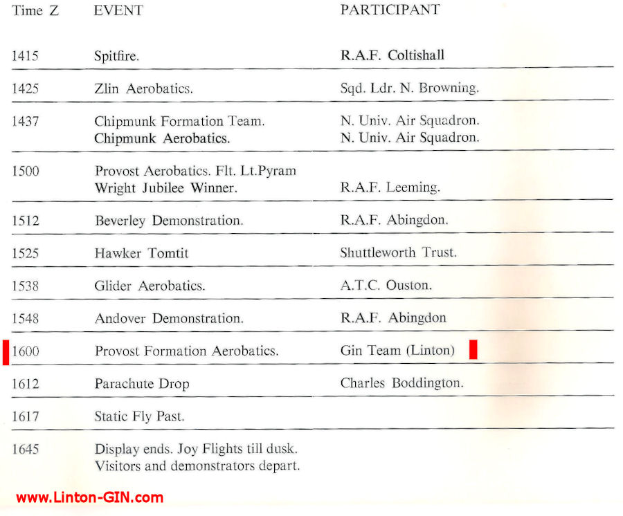 Here's a couple of scans of the programme from this event. PLEASE NOTE : The Arial photo is a "general" photo of 3 JP's & NOT the GIN team !
